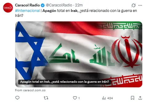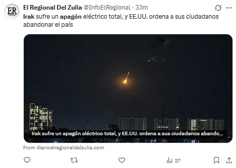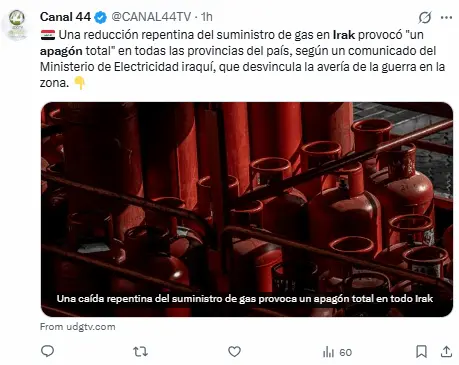 Regeneración, 4 de marzo de 2026 – Este miércoles, Irak enfrentó un corte de luz que abarcó todo su territorio, según lo indicado por el Ministerio de Electricidad. Inicialmente, no se conocía la causa, pero después el representante del ministerio mencionó que el corte se debió a un «problema técnico por una caída repentina en el suministro de gas».