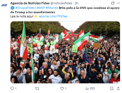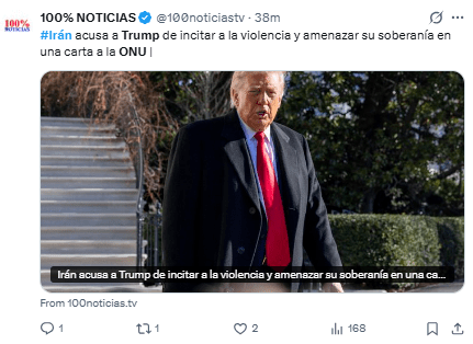 La carta se elaboró en respuesta a unas afirmaciones previas de Trump, quien mencionó que hoy enviaría apoyo económico a los opositores en Irán.