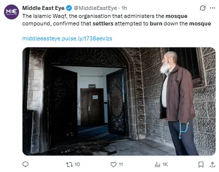 «El incendio de una parte de la mezquita demuestra claramente el grado de barbarie alcanzado por la máquina israelí…