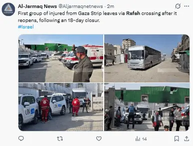 Regeneración, 19 de marzo 2026– El jueves, Israel restableció el paso fronterizo de Rafah con Egipto, después de casi tres semanas de cierre, para facilitar que algunos palestinos heridos salieran en busca de atención médica.