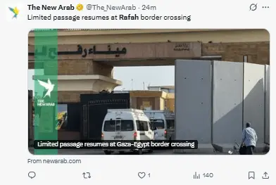 Son 18 mil pacientes quienes esperan cruzar el paso de Rafah para recibir atención, solo 8 lograron cruzar a Egipto este jueves
