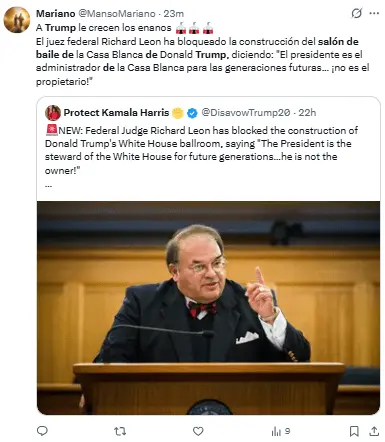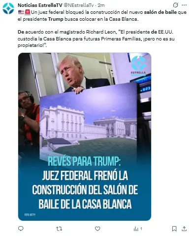 Regeneración, 1 de abril 2026– Richard Leon, un juez de distrito en Washington, otorgó la petición de un grupo que defiende la conservación, para frenar temporalmente el proyecto que implicaba la demolición del Ala Este de la Casa Blanca.