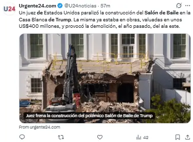 El juez decidió, además, que cualquier trabajo de construcción necesario para garantizar la seguridad de la Casa Blanca no está incluido en la orden del tribunal.