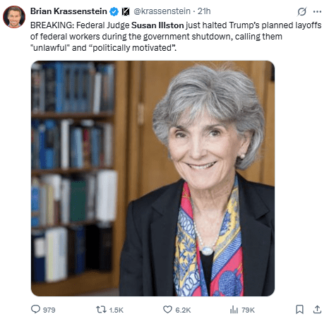 Susan Illston emite una resolución judicial que temporalmente suspende la posibilidad de Trump de despedir trabajadores federales