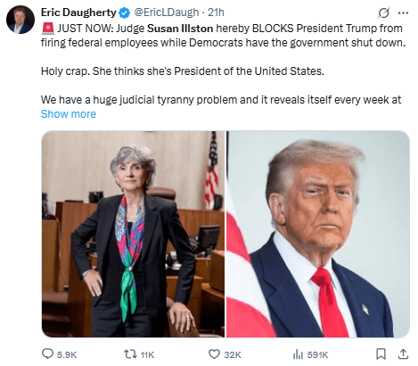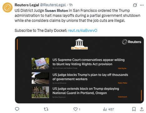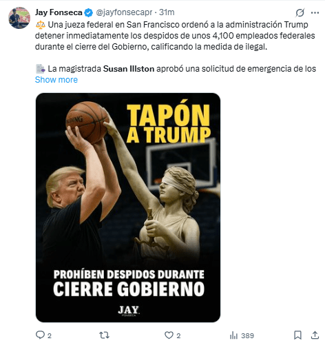 Regeneración, 16 de octubre 2025– Una jueza estadounidense ordenó el miércoles a Trump que detuviera los despidos masivos de trabajadores durante el cierre del gobierno, después de que la Casa Blanca dijera que esperaba echar a 10.000 empleados públicos.