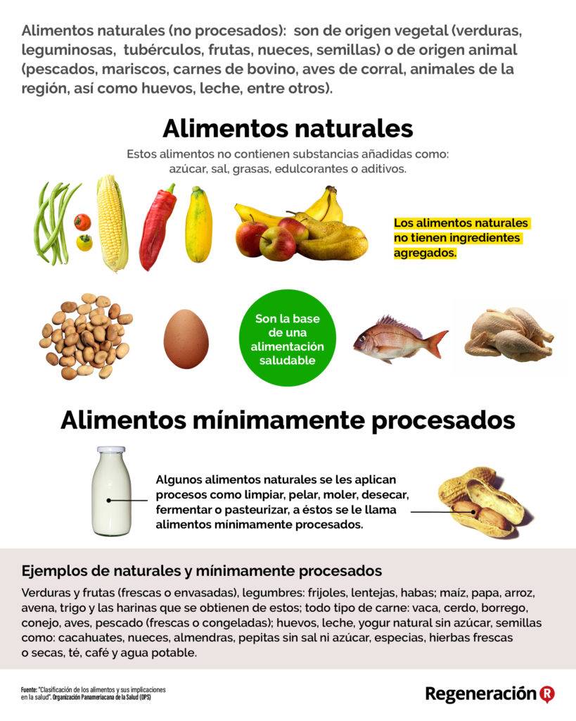 Regeneración, 24 de septiembre. Los alimentos por su proceso de producción se clasifican en naturales, mínimamente procesados, procesados y los ultraprocesados (comida chatarra).