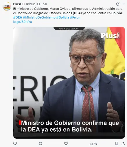 «Bolivia no tuvo éxito en la lucha contra el narcotráfico con Morales y (el expresidente Luis) Arce, y la DEA tiene que regresar respetando la soberanía.