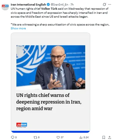 Regeneración, 1 de abril 2026– La Oficina de Derechos Humanos advirtió que los gobiernos de Oriente Medio están desatando una “ola de represión” bajo el pretexto de la guerra, y reafirmó que cualquier restricción debería ser realmente necesaria, proporcionada y temporal.