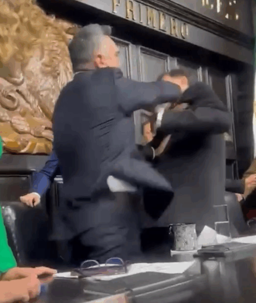 Este último, quien se adelantó y aprovechando el forcejeo, golpeó con el puño al presidente del Senado y a González, mientras algunos legisladores intentaban separarlos.