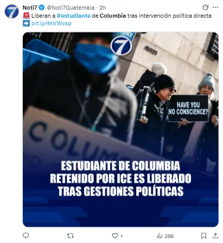 Liberan estudiante de Universidad de Columbia arrestada por ICE