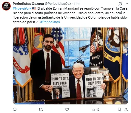 El alcalde Zohran Mamdani comentó que el presidente Donald Trump le aseguró, durante una reunión hoy en la Casa Blanca, de la inmediata liberación de la estudiante.