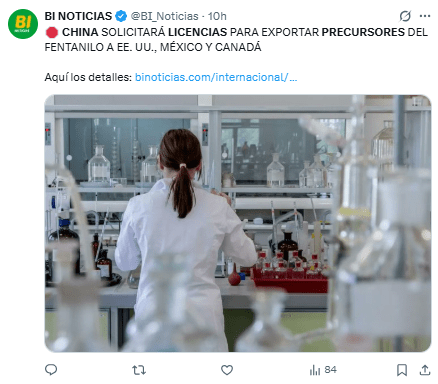 China exige licencias especiales para exportar 13 precursores químicos de fentanilo y metanfetamina a México, EE.UU. y Canadá