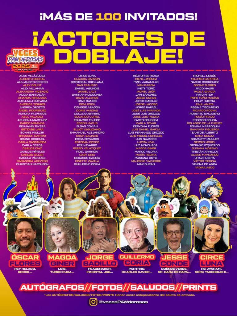 RegeneraciónMx, 18 de octubre de 2025.- Las voces más queridas del doblaje mexicano se unirán este 18 y 19 de octubre en la cuarta edición de Voces Pawderosas. El evento busca apoyar albergues de animales.