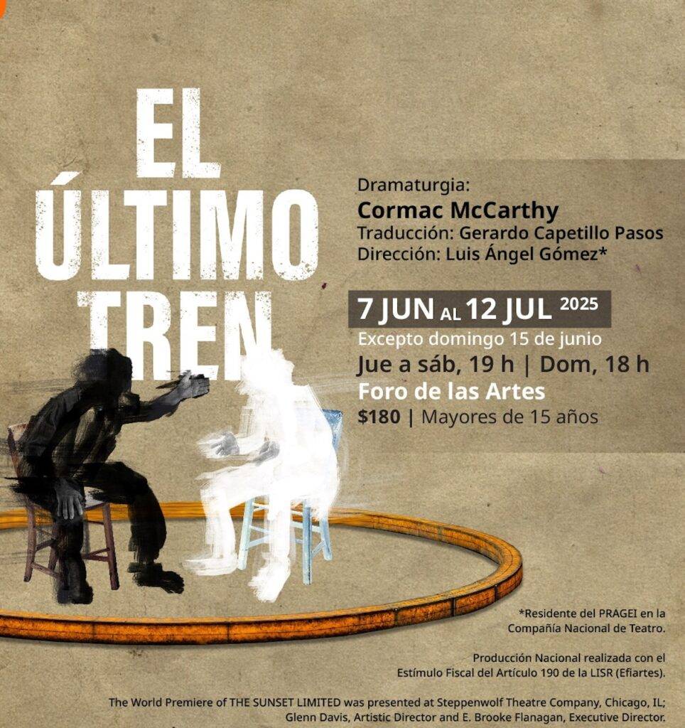 El último tren es un montaje basado en The Sunset Limited, del escritor estadounidense conocido internacionalmente por Trilogía de la frontera (Border Trilogy), No es país para viejos (No Country for Old Men) y La carretera (The Road). Este montaje cuenta con el apoyo del Estímulo Fiscal del Artículo 190 de la LISR (EFIARTES). El último tren se presentará del del 7 de junio al 12 de julio, excepto el domingo15 de junio, en el Foro de las Artes. Las funciones serán de jueves a sábados, alas 19:00 h; y domingos, a las 18:00 hrs.