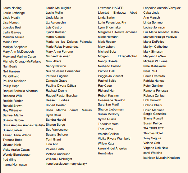 Asimismo, Friends of Latin America, Fundación Avina, Global Exchange, Hacer las Paces, Lila LGBTQ Inc., Migrant and Minorities Alliance y Mexico Solidarity Project.