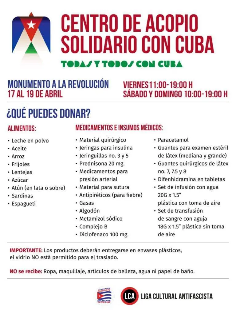 El Monumento a la Revolución reunió a grandes artistas y ciudadanos para recolectar medicinas y alimentos destinados a familias cubanas