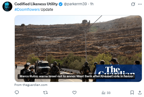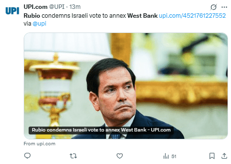 Marco Rubio advierte contra la anexión de Cisjordania