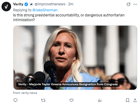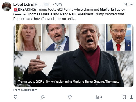 Ella encarna lo que un verdadero representante debe ser”, escribió Massie en X, poco después del anuncio de Greene.