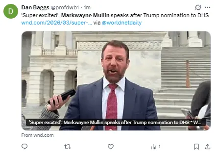 Luego de que Trump anunciara su decisión de nombrar a Mullin como nuevo secretario de Seguridad Nacional, este comentó que su prioridad sería “proteger la patria”.