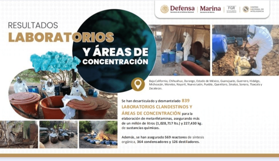 E incluso, un laboratorio para la elaboración de metanfetamina, además de 2 plantíos de marihuana y de amapola.