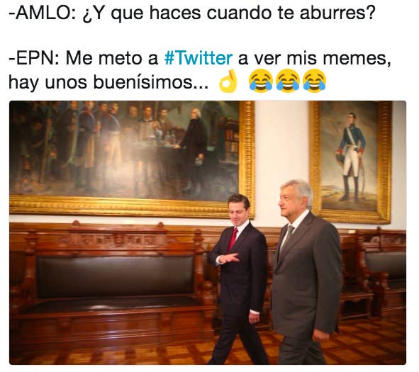 Regeneración, 3 de julio del 2018.- Tras la primera reunión en Palacio Nacional, del presidente electo Andrés Manuel López Obrador y el actual mandatario Enrique Peña Nieto. Los usuarios de las redes se tomaron con humor el evento.