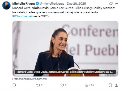 “Tenía que decirlo: ¡Me encanta que una mujer gobierne en México! ”, expresó. Asimismo, después de las elecciones de junio de 2024, escribió: