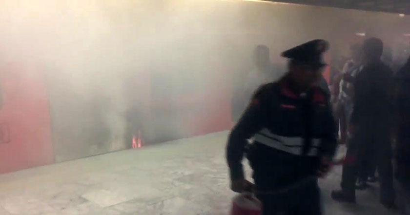 Regeneración, 26 de octubre de 2016.- El banco de resistencia de un tren del Metro empezó a quemarse en la estación Cuauhtémoc de la Línea 1, y llenó la estación de humo este miércoles. Pasajeros tuvieron que salir de la estación debido al humo.