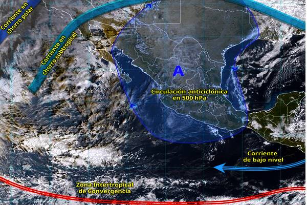 Una circulación anticiclónica en niveles medios de la atmósfera favorecerá tiempo estable, con predominio de cielo despejado y sin probabilidad de lluvia sobre la mayor parte del territorio nacional.