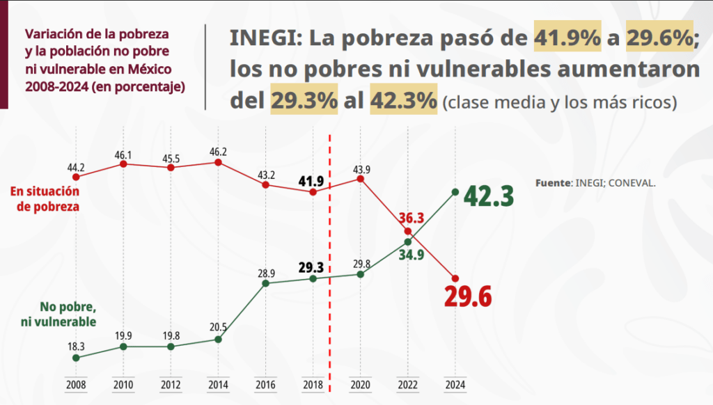 Sin embargo, en el 2024 solo el 21.7 por ciento de la población estaba en situación de pobreza.