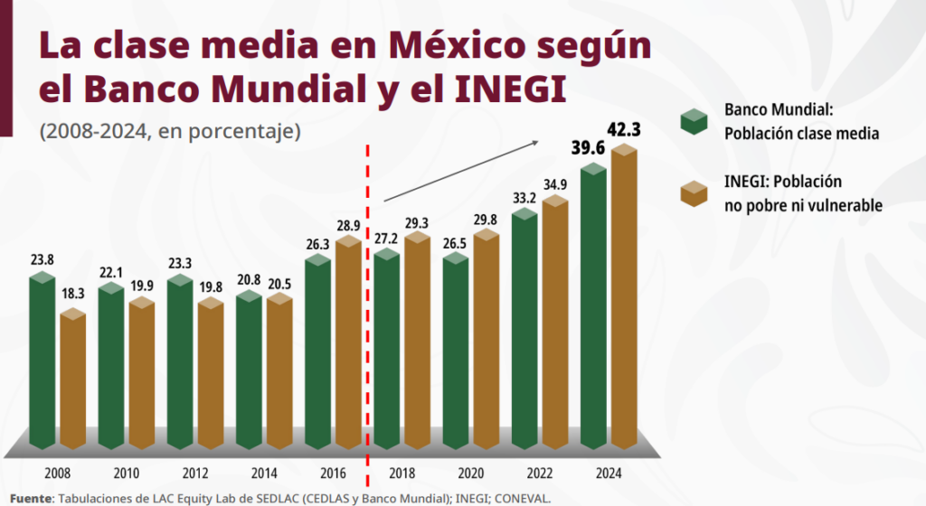 Banco Mundial: En México de 2028 a 2024 unos 12 millones de personas pasaron a la clase media. Además 13 millones dejaron de ser pobres