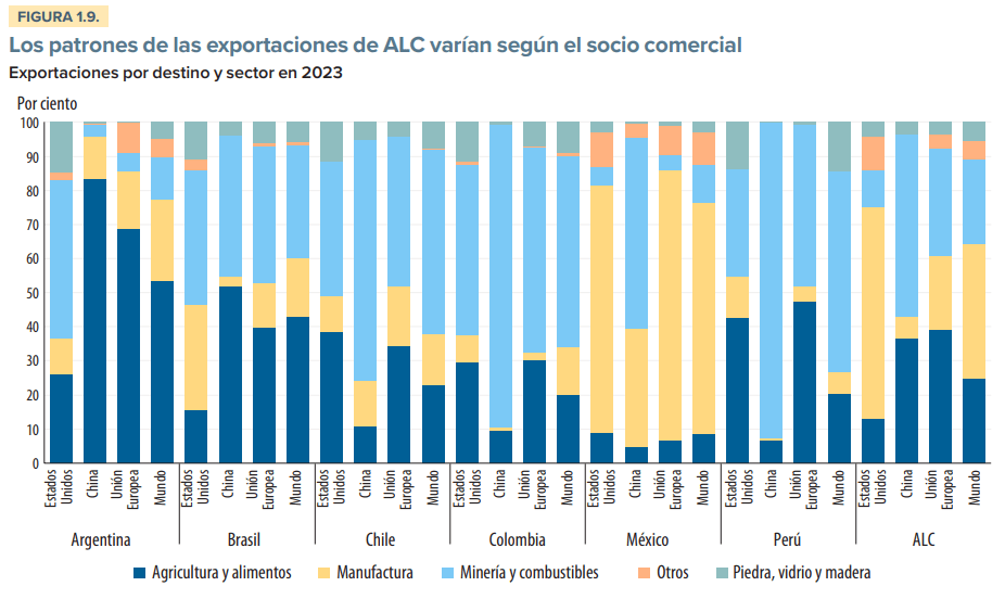 Así los sectores productivos se relacionan con exportaciones concretas, Estados Unidos se envían más manufacturas, en tanto que a China se envían minerales y combustibles.