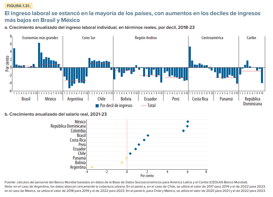 El informe destaca que el salario real promedio aumentó en 6 puntos porcentuales durante el periodo analizado.