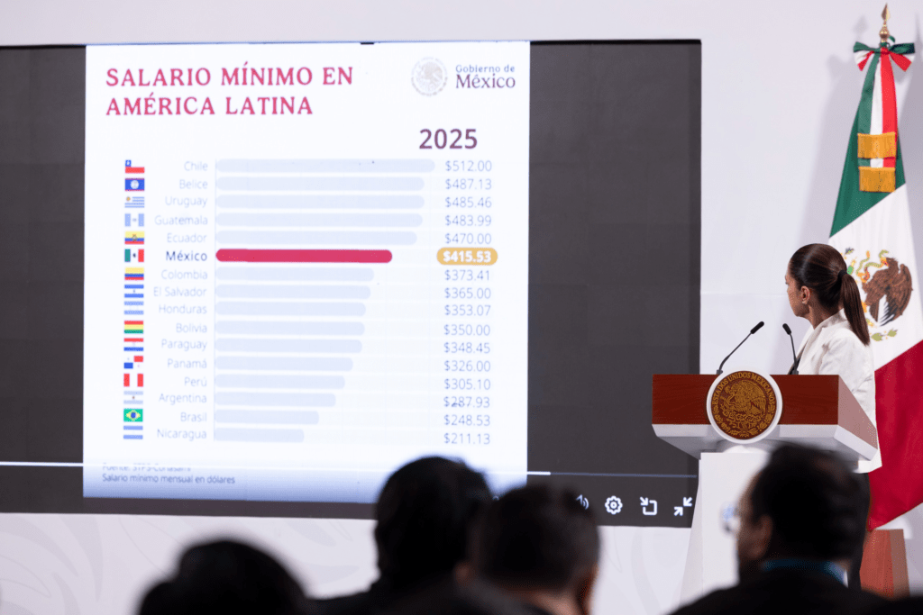 Sheinbaum reiteró que esta política salarial continuará en su administración, con el objetivo de que, para el año 2030, el salario mínimo permita adquirir al menos 2.5 canastas básicas.