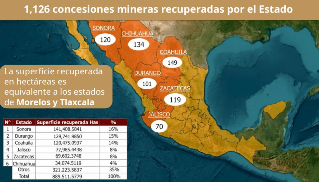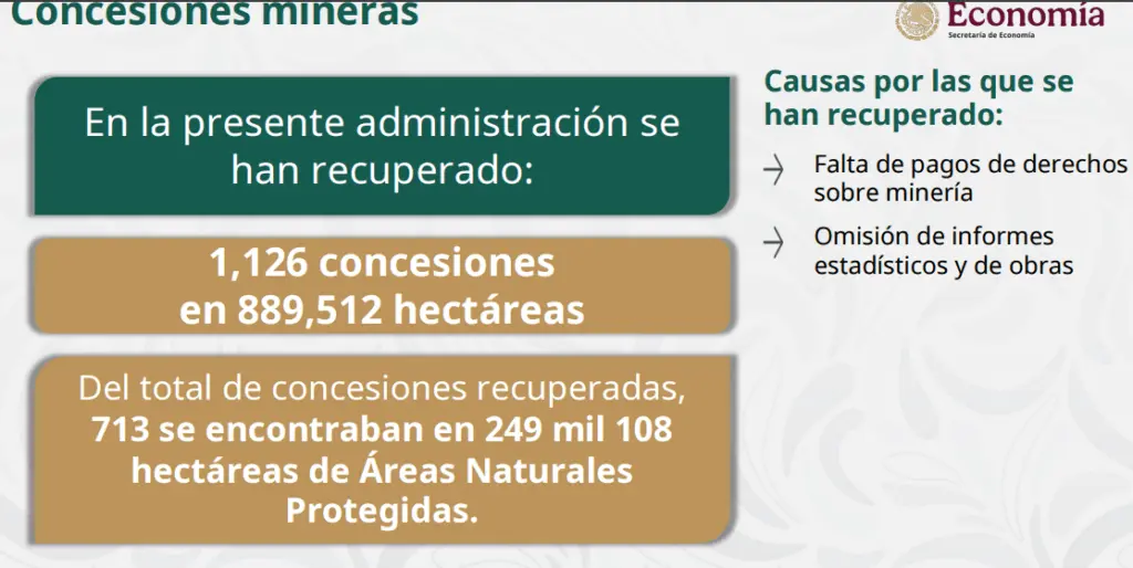 En tanto que el jefe de la Unidad de Coordinación de Actividades Extractivas Fernando José Aboitiz Saro, explicó que las devoluciones de las 889 mil 512 ha se dieron por falta de pago de derechos sobre minería.