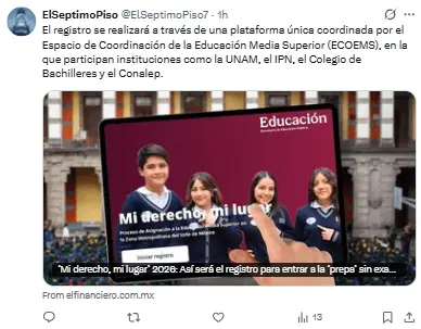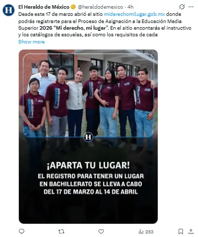 Regeneración, 18 de marzo 2026– En los días siguientes dará inicio, por segundo año en fila, el proceso para la asignación a la Educación Media Superior en la Zona Metropolitana del Valle de México 2026, a través del programa ‘Mi derecho, mi lugar’.