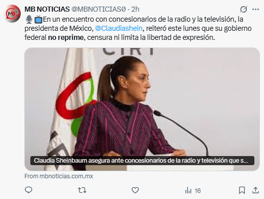 Regeneración, 13 de noviembre 2025– La Presidenta Claudia Sheinbaum aseguró este miércoles ante concesionarios de radio y televisión que su Gobierno no reprime ni censura, sino que protege la libertad de expresión. Además, explicó que este principio es esencial para la justicia y la democracia.