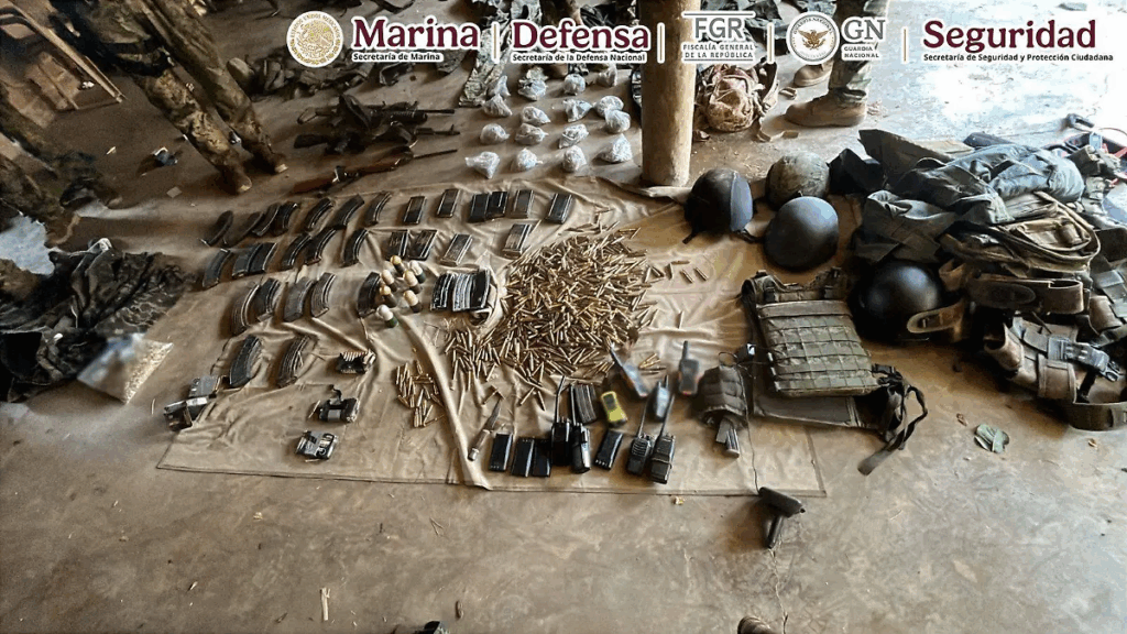 También se ubicó un campamento, donde se decomisaron armas y cargadores de diversos calibres, explosivos, equipo táctico y tecnología de comunicación encriptada.