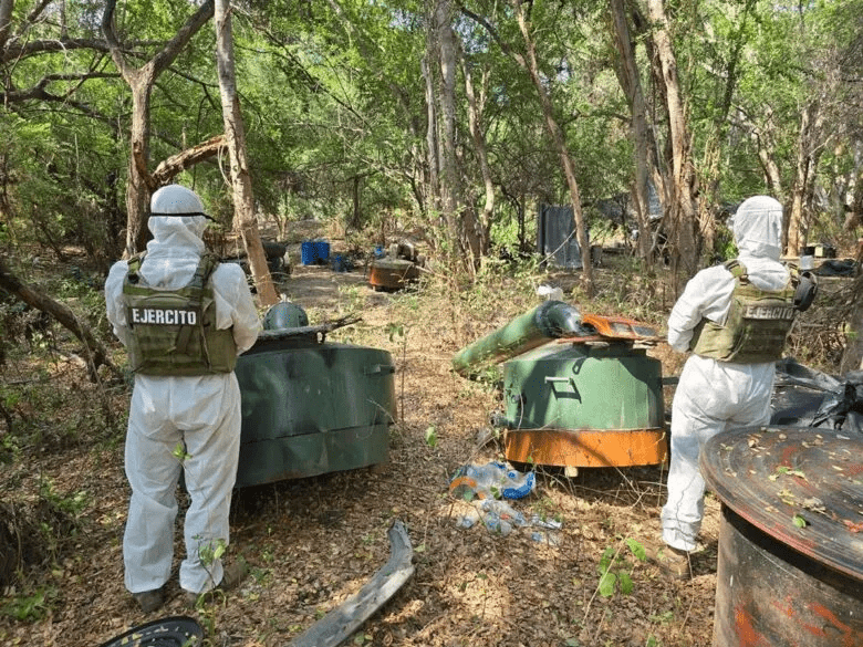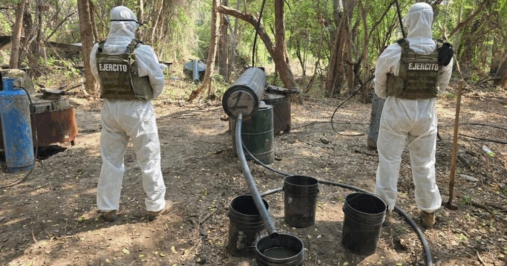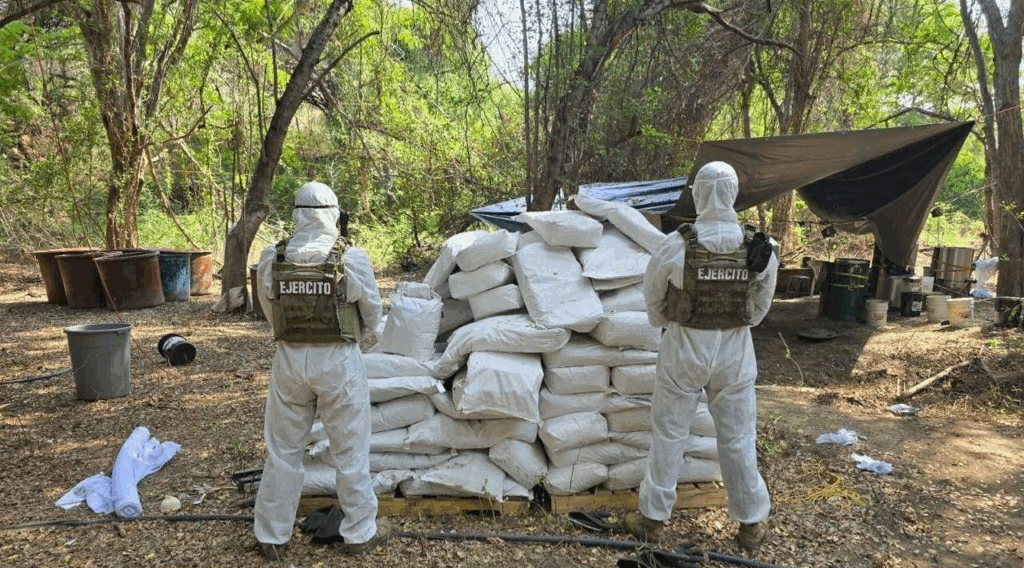 Regeneración, 29 de mayo de 2025. En Michoacán, la Defensa desmanteló megalaboratorio producía semanalmente dos toneladas de sustancias ilícitas