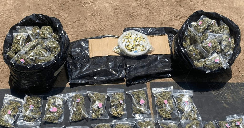 Incluso, una bolsa de 4 Kg aproximadamente de hierba seca con características propias de la marihuana, quinientas treinta.
