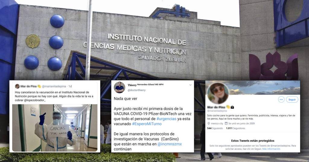 Usuarios de Twitter descubrieron que una cuenta estaba difundiendo información falsa sobre la vacuna Covid-19 en un hospital de la Ciudad de México; el Instituto Nacional de Ciencias Médicas y Nutrición ‘Salvador Zubirán’ (INCMNSZ).