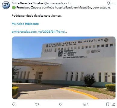 Luego, fue trasladado en un helicóptero de la Fuerza Aérea Mexicana al Hospital General de Mazatlán, donde recibirá atención de especialistas.