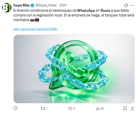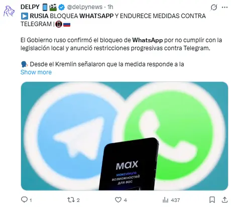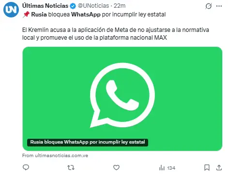 Regeneración, 12 de febrero 2026– Este jueves, Rusia anunció el bloqueo de WhatsApp, en medio de un aumento en la censura en redes sociales, recomendando a los usuarios rusos que utilicen su propia aplicación estatal llamada Max.