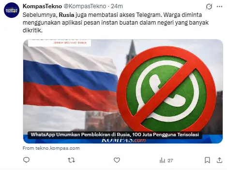 Esta información surge tras darse a conocer que las autoridades rusas estaban limitando el acceso a Telegram, plataforma que es utilizada por millones en Rusia.