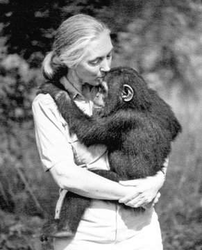 Quizás el máximo ejemplo sea una imagen de ella tomada por su difunto esposo, el fotógrafo holandés Hugo van Lawick, en Tanzania junto a un chimpancé bebé conocido como el pequeño Flint.