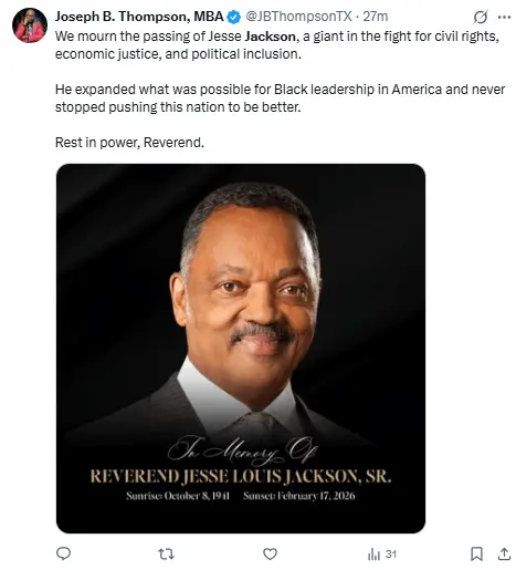 Jackson dedicó su vida a luchar tanto en Estados Unidos como en el extranjero en apoyo de los pobres y los desfavorecidos.