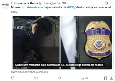 A pesar de que el hombre recibió traslado a un hospital para tratamiento médico, el ICE reportó que su deceso ocurrió aproximadamente a las 08:51 horas.