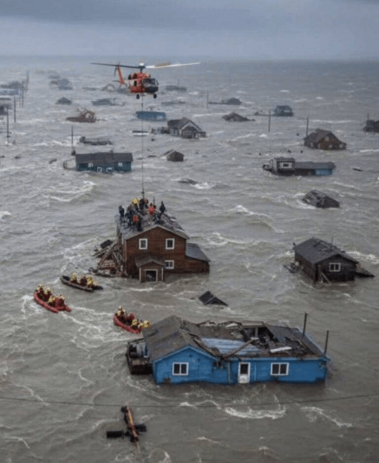 El oleaje devastador, producto de los remanentes del tifón Halong que azotaron el suroeste de Alaska el domingo 12 de octubre de 2025, provocó inundaciones mayores a los 1.8 metros por encima de la marea alta habitual en comunidades cercanas al mar de Bering.