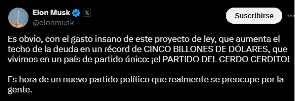 Y es que Musk sostiene que la normativa incrementaría enormemente la deuda nacional y eliminaría los ahorros que afirma haber conseguido a través de DOGE.