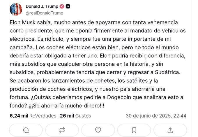 Como se sabe a principios de junio, Trump había amenazado con reducir los contratos gubernamentales de Musk.