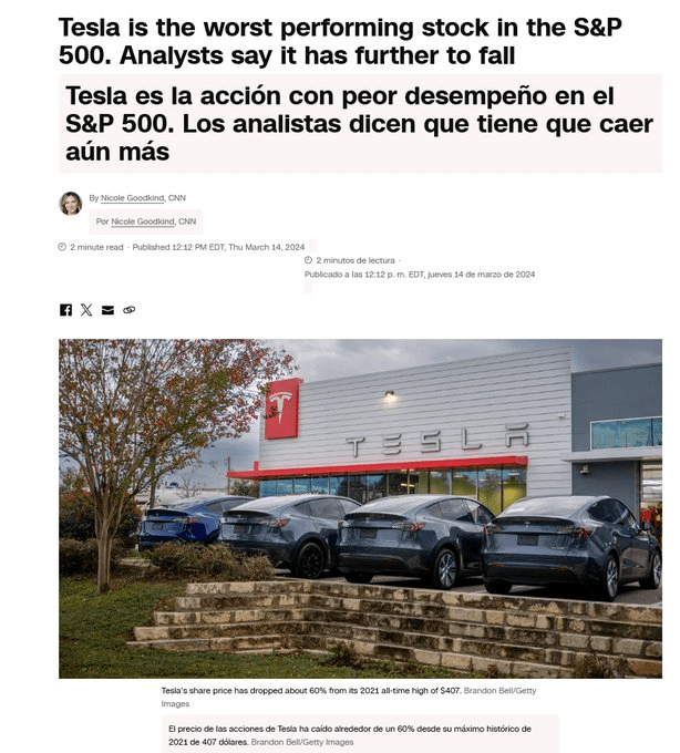 Es importante mencionar que las acciones de Tesla han bajado un 15 por ciento en lo que va del año.